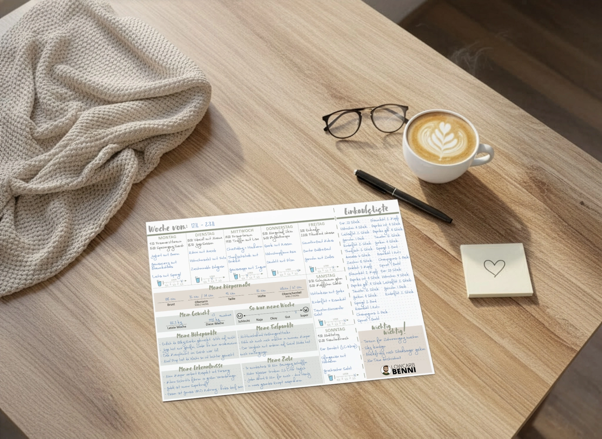 Das Beste? Er ist undatiert. Du kannst also sofort starten – egal ob Montag, Mittwoch oder Sonntag. Kein Druck, nur purer Fokus auf DICH und dein Ziel! ✨